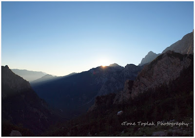 Dobrih 45 min prehojenih mimo slapa Rinka in po soteski kjer izvira Savinja prispem na Okrešelj prelep jutranji prizor ko prvi sončni žarki obsijejo gore...