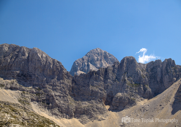 Vrh res postreže z veličastnim pogledom na Triglav in njegovo Severno steno.Kozorogov pa tokrat ni saj je razumljivo, je prevroče in so se skrili v svoje kotičke kjer je hlad.Pa tudi zgodenj moraš biti če si jih želiš ogledat.Zato je najboljša varianta zgodaj zjutraj čez Luknjo na Bovški Gamsovec.